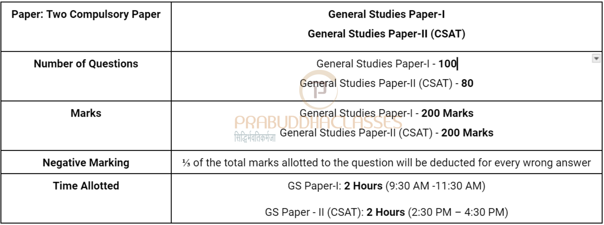 General Studies Paper-II or CSAT: It will consist of 80 Multiple Choice Questions and Time allotted for this paper is two hours (2:30 PM – 4:30 PM).